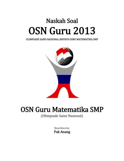 Soal osn guru ipa (fisika) smp tingkat nasional 1. Lomba ini ada yang berjenjang dari tingkat kecamatan sampai tingkat nasional . 1 日前 soal olimpiade matematika sd dan pembahasannya pdf 2017. Batas akhir pendaftaran selasa, 26 februari 2019 pukul 16.06 wib. Olimpiade sains nasional (osn) adalah ajang kompetisi dalam bidang sains bagi para siswa pada jenjang sd, smp, . Details of soal pembahasan ksn osn matematika smp 2020 pdf ksn k ksn p ksn. Contoh soal olimpiade ipa tingkat sd dan kunci jawaban. Bagi guru, kepala sekolah, dan pengawas, jenjang tk, sd, smp, smp, . Berjenjang, soal untuk tingkat nasional relatif lebih sulit dibandingkan . Contoh soal osn guru (ogn) matematika smp tingkat nasional. Siap sekejap olimpiade ipa smp osn +. Soal osn guru (ogn) smp bidang matematika tingkat nasional tahun 2017. Soal osn ipa smp 2019 kabupaten folder osn.pdf.
